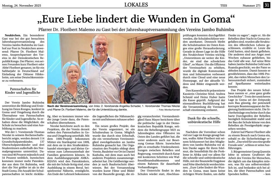 Das wünschen wir dem kleinen Dorf Buhimba und seiner Umgebung in der Nähe der Stadt Goma, im Osten der